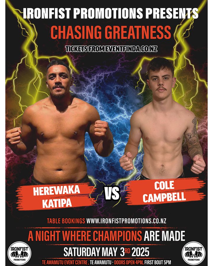 Added to the "Chasing Greatness" card, Cole Campbell and Herewaka Katipa will make their professional debuts against each other in a four-round cruiserweight bout. The action takes place on Saturday, May 3, 2025, at the Te Awamutu Events Centre, New Zealand.